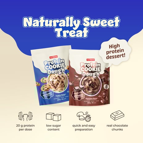 is an irresistible dough that you can make in a few minutes. Enjoy your favorite flavour with real chocolate chips. It is low in sugars and high in protein which means it not only fills you up, but also contributes to bone health and muscle growth. This makes the product suitable not only for those on a diet, but also for all fitness enthusiasts.