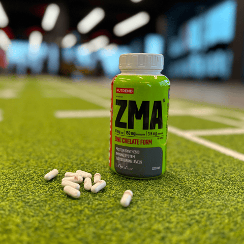 Mixture of ZMA® (magnesium citrate, magnesium oxide, L-OptiZinc® (zinc mono-L-methionine sulphate), zinc L-aspartate, pyridoxine hydrochloride (vitamin B6)), gelatine capsule (gelatine, colouring iron oxide). ZMA® is a registered trademark of SNAC System, Inc.